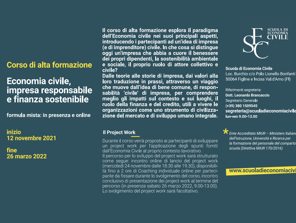 Corso di alta formazione in Economia civile, impresa responsabile e finanza sostenibile