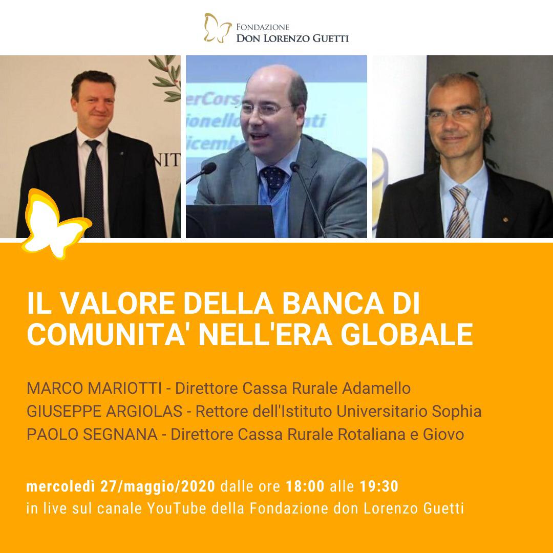 Segnaliamo un interessante webinar della Fondazione Don Lorenzo Guetti dal titolo “Il valore della banca di comunità nell’era globale”