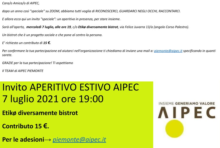Invito APERITIVO ESTIVO AIPEC PIEMONTE