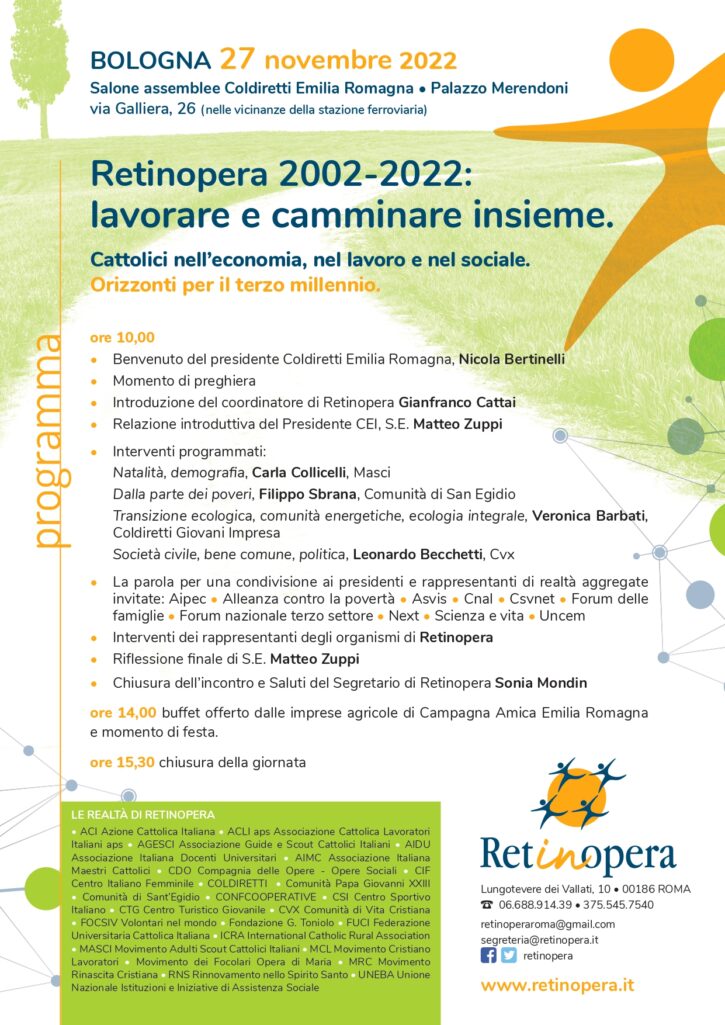 “ Retinopera 2002-2022: lavorare e camminare insieme. Cattolici nell’economia, nel lavoro e nel sociale. Orizzonti per il terzo millennio”