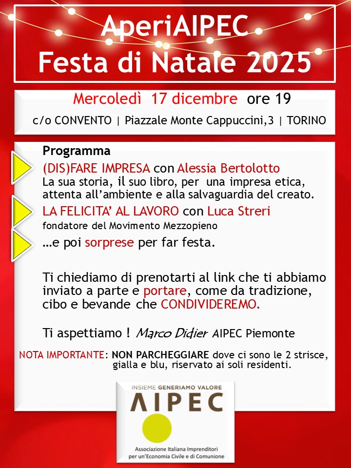 Si avvicina l’appuntamento con l’AperiAIPEC – Festa di Natale 2025, un momento speciale per incontrarci, condividere esperienze e celebrare insieme il cammino di quest’anno.