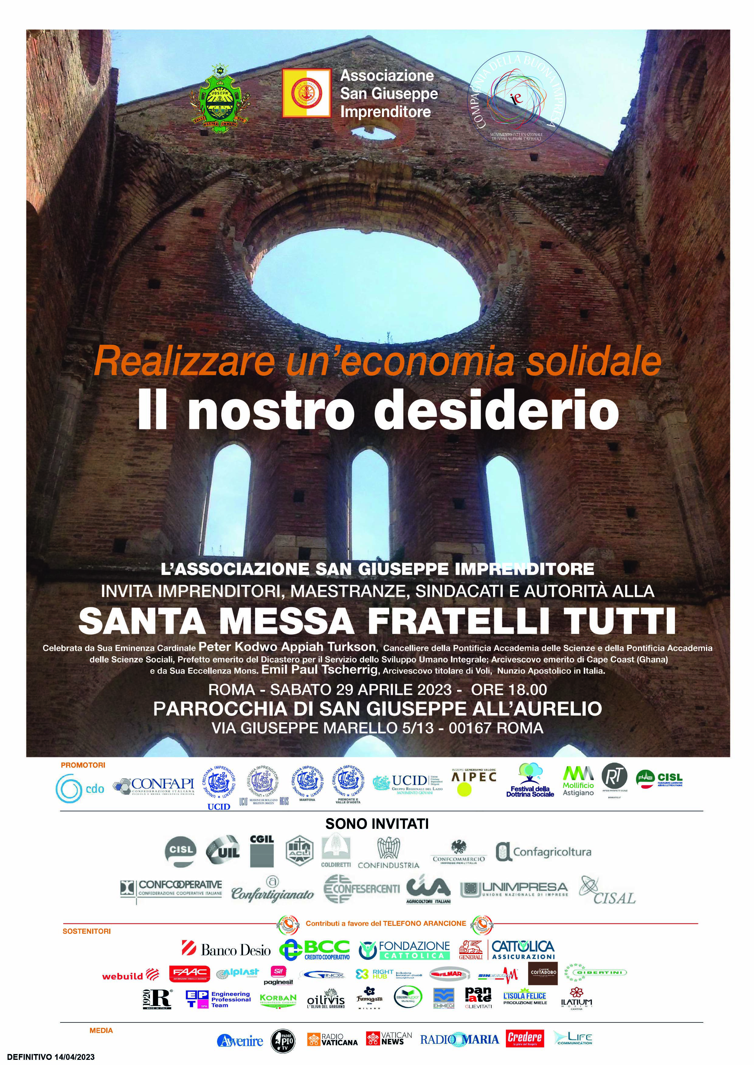 Associazione San Giuseppe Imprenditori – sabato 29 aprile – Santa Messa Fratelli Tutti – AIPEC è tra i promotori!