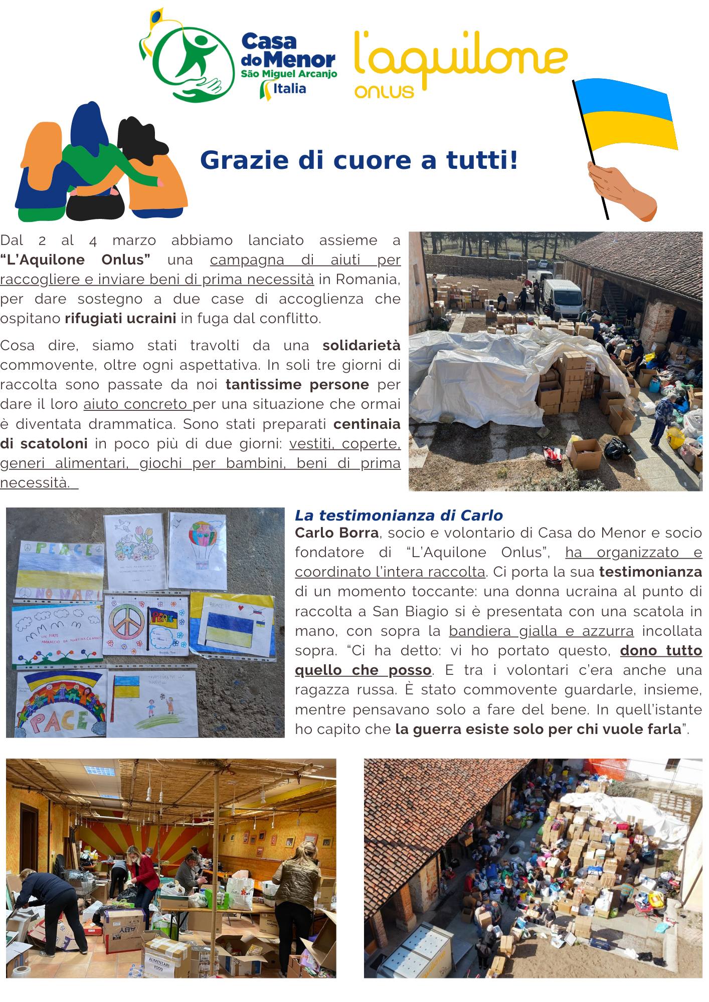 Casa do Menor Italia Onlus è insieme a Onlus L’Aquilone – Farigliano e Proteo Cooperativa Sociale Mondovì per dare assistenza alla popolazione ucraina.