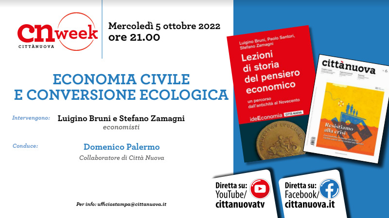 Il prof. Luigino Bruni ed il prof. Stefano Zamagni dialogheranno sul tema Economia civile e conversione ecologica.