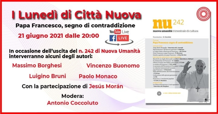 Vi proponiamo un’interessante diretta online, tenutasi in data 21/06/2021 sul canale Youtube di Città Nuova, in occasione della pubblicazione del numero 242 della rivista Nuova Umanità, diretta da Alberto Lopresti.