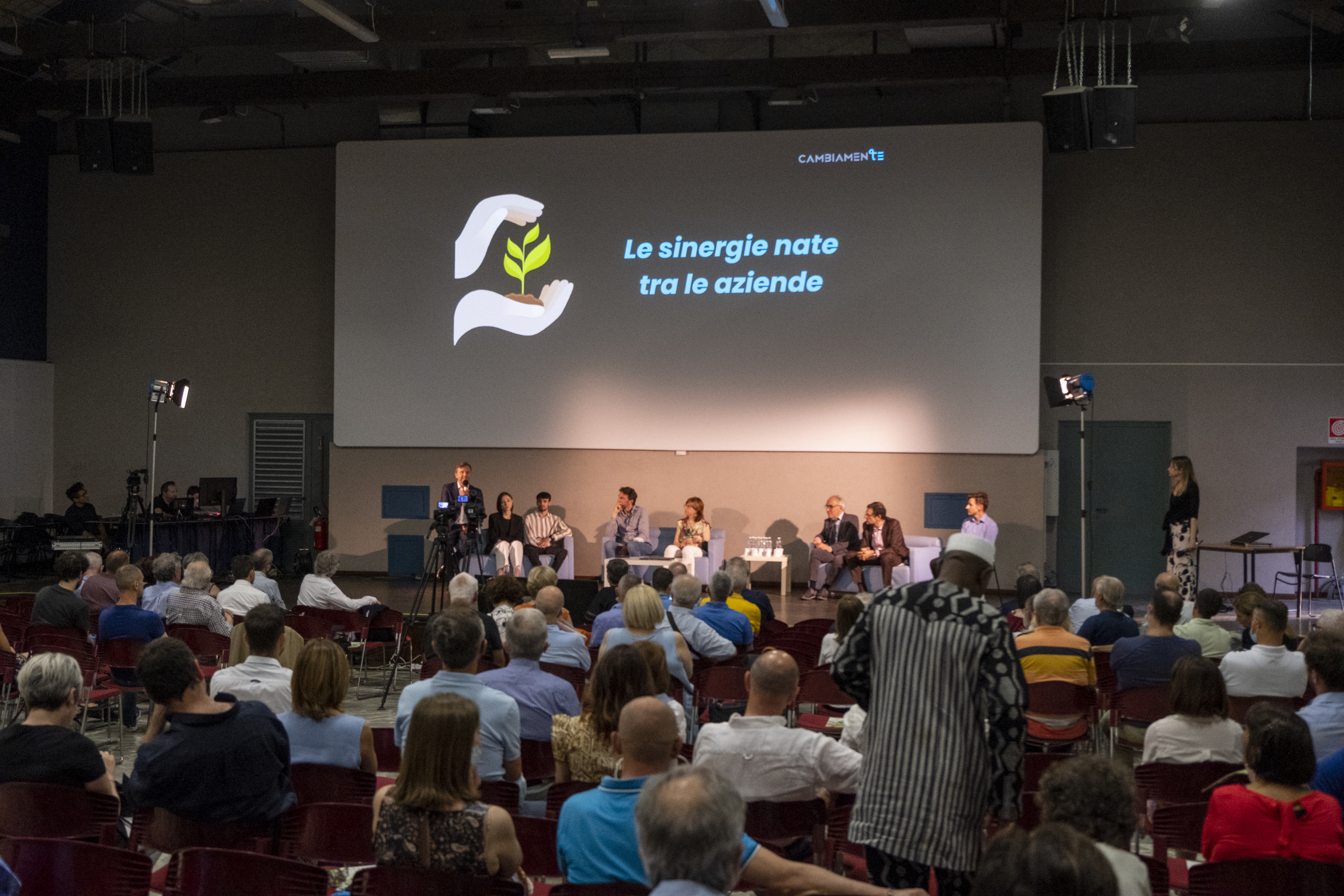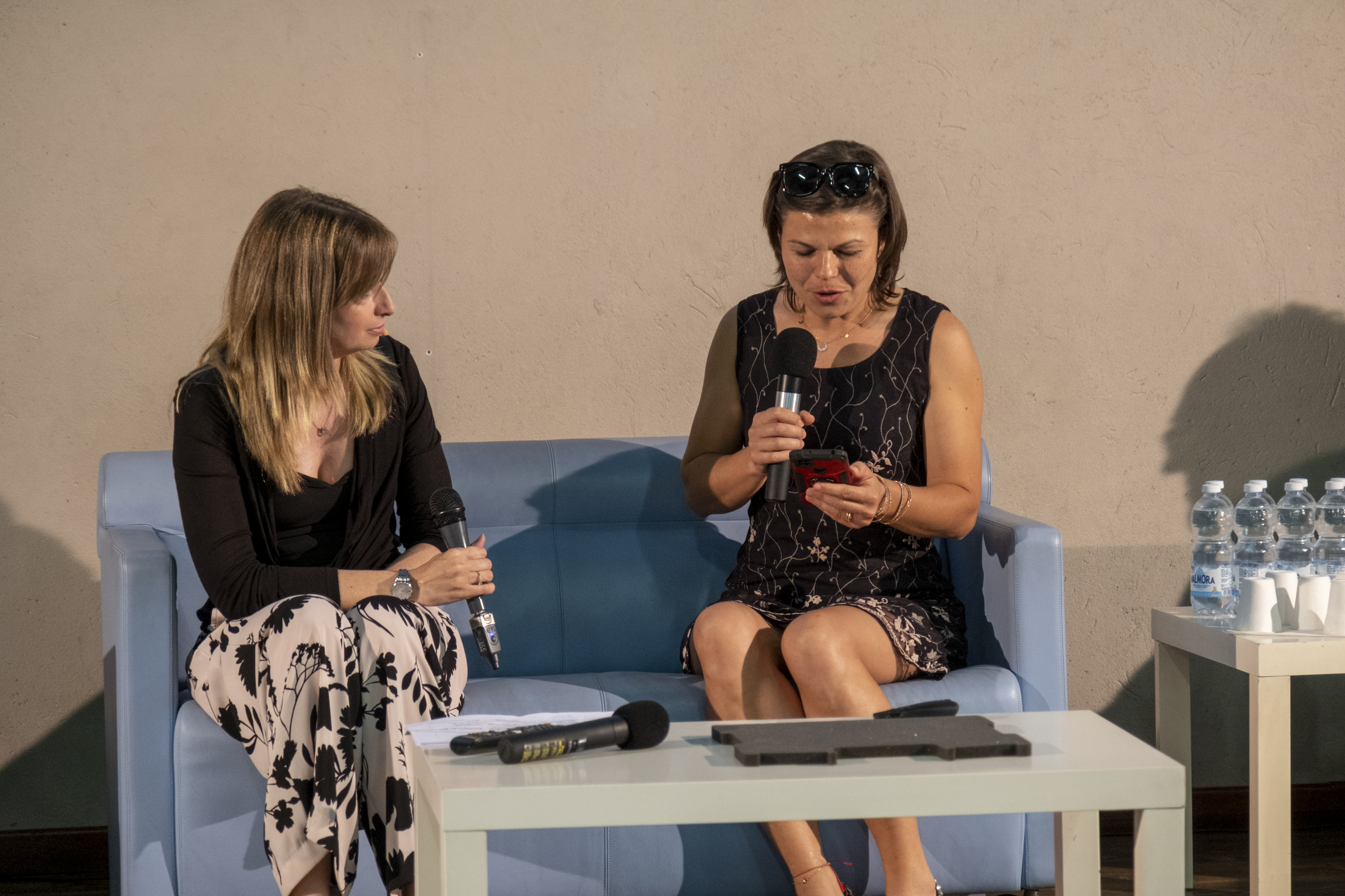 Sulla sinistra la conduttrice Eugenia Scotti e l’imprenditore Nicola Scarlatelli della SAMEC S.p.A nonché Presidente della CNA.