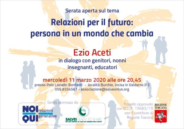 Mercoledì 11 Marzo si terrà, sul web, in collegamento zoom con Ezio Aceti, l’incontro Relazioni per il futuro: persona in un mondo che cambia.