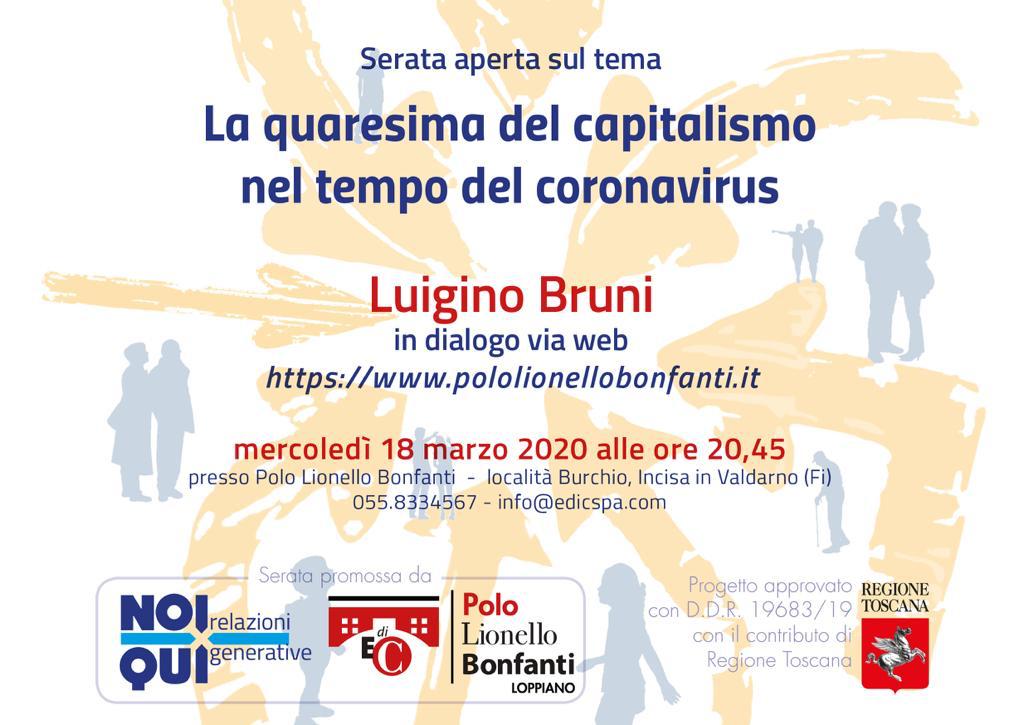 Mercoledì 18 marzo si è tenuta una serata webinar con Luigino Bruni sul tema “La quaresima del capitalismo nel tempo del Coronavirus”.