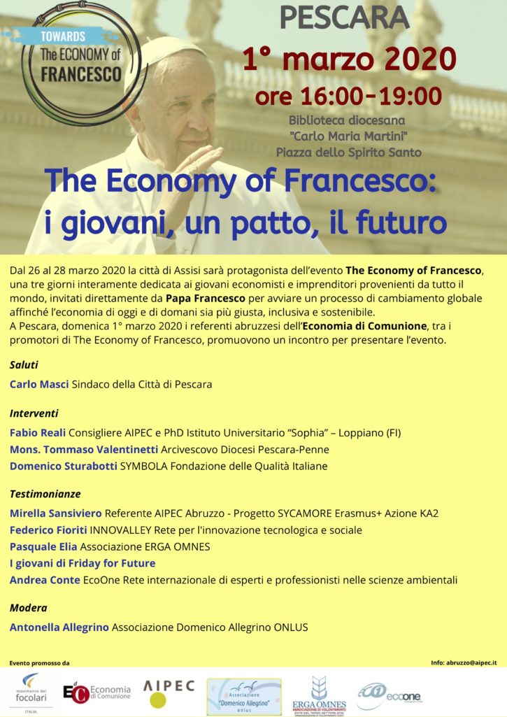 A Pescara, domenica 1° marzo 2020 i referenti abruzzesi dell’Economia di Comunione, tra i promotori di The Economy of Francesco, promuovono un incontro per presentare l’evento.