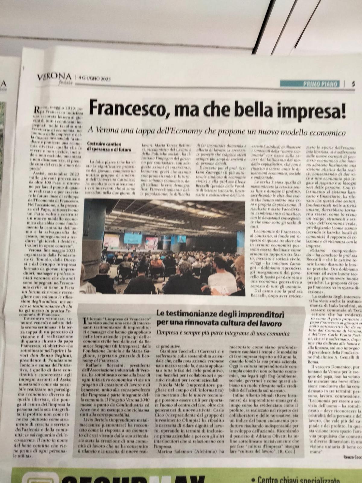 Economy of Francesco a Verona per dare una svolta all’intraprendere